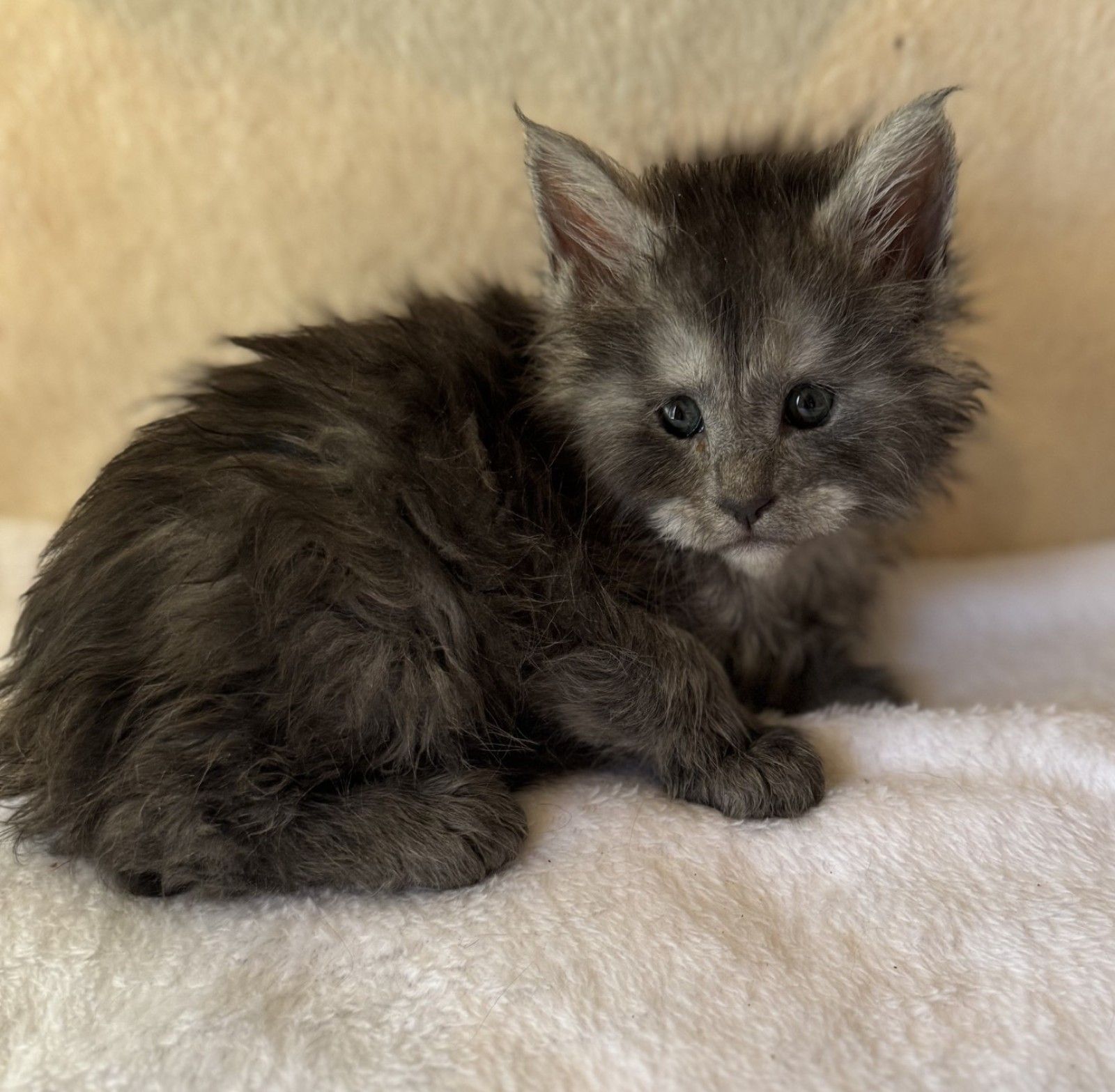 This gorgeous black smoke female Maine Coon kitten, born on 8 August 2025, already shows off the breed’s signature smoke coat with a silvery undercoat and rich dark topcoat. She has a sweet, affectionate nature, is well-socialised, and will come vet-checked, vaccinated, microchipped, and with pedigree papers. Available now for reservation at $3,000 with a $1,000 deposit and the $2,000 balance due at 12 weeks before desexing.