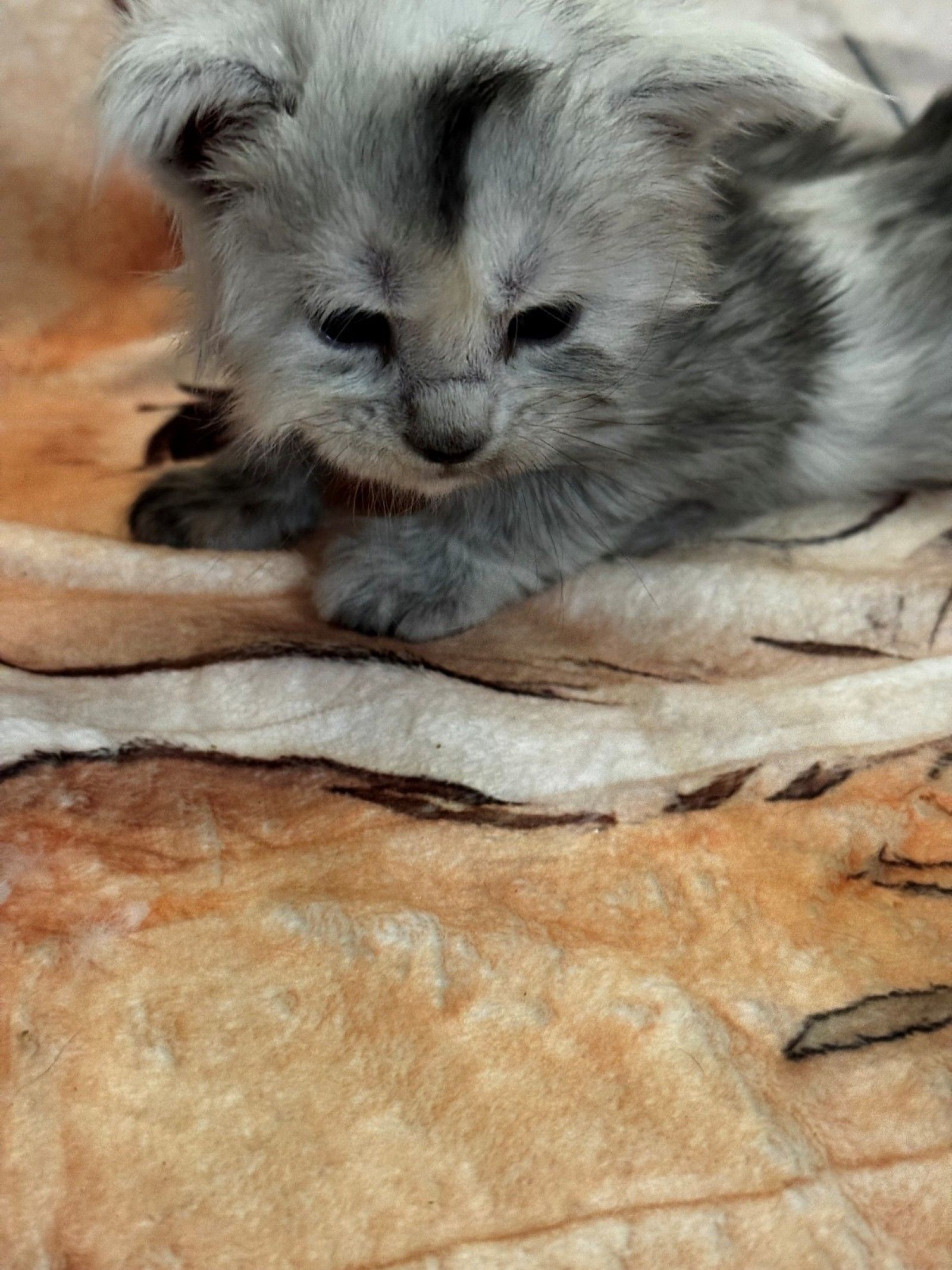 This boy has strong, dark smoke colouring and a sturdy build. He’s adventurous and outgoing, always keen to clamber over cushions and siblings alike.