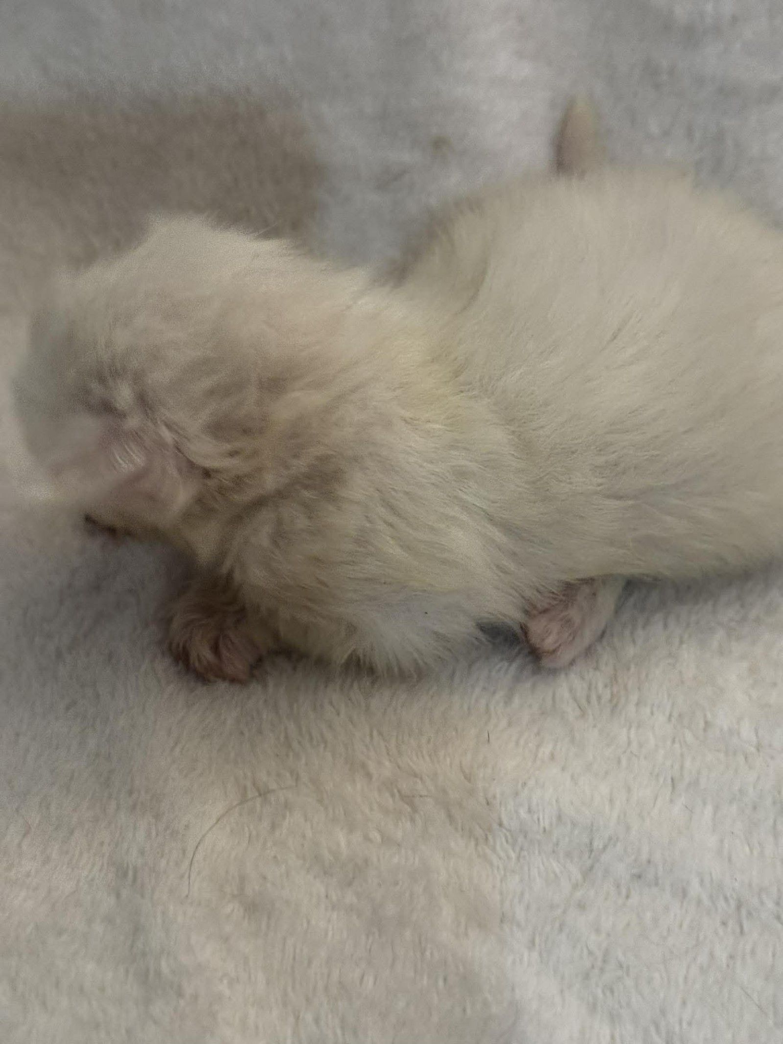 This sweet High Red Smoke boy has a soft, creamy coat with warm undertones already beginning to show through. His pale colouring gives him a lovely gentle appearance, and even at this tiny age he already has that soft, cuddly charm that makes him so hard to resist.
