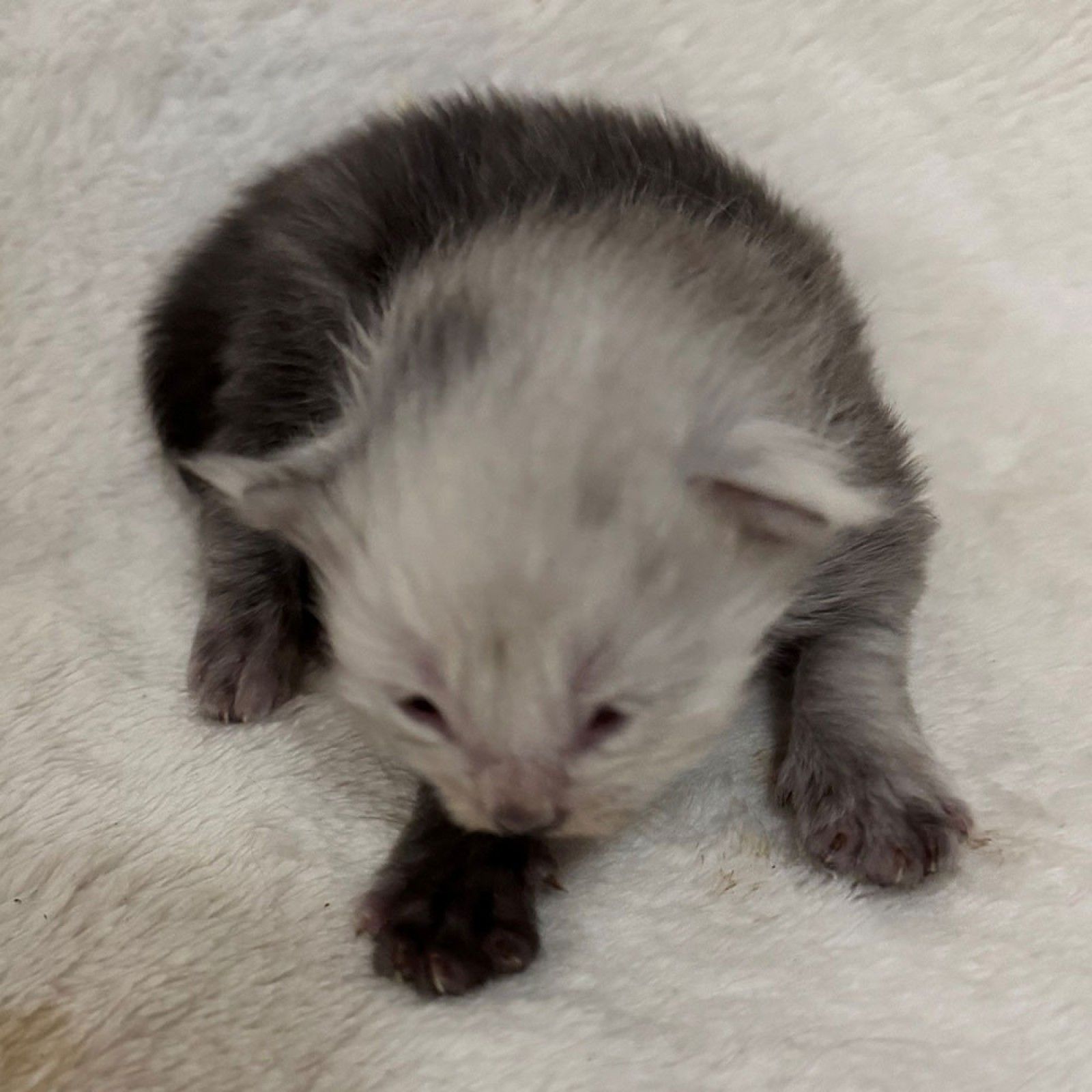 With a soft, frosted coat and gentle expression, this little one is already showing wonderful contrast and texture in his fur. He’s content and relaxed, perfectly happy being held and admired.