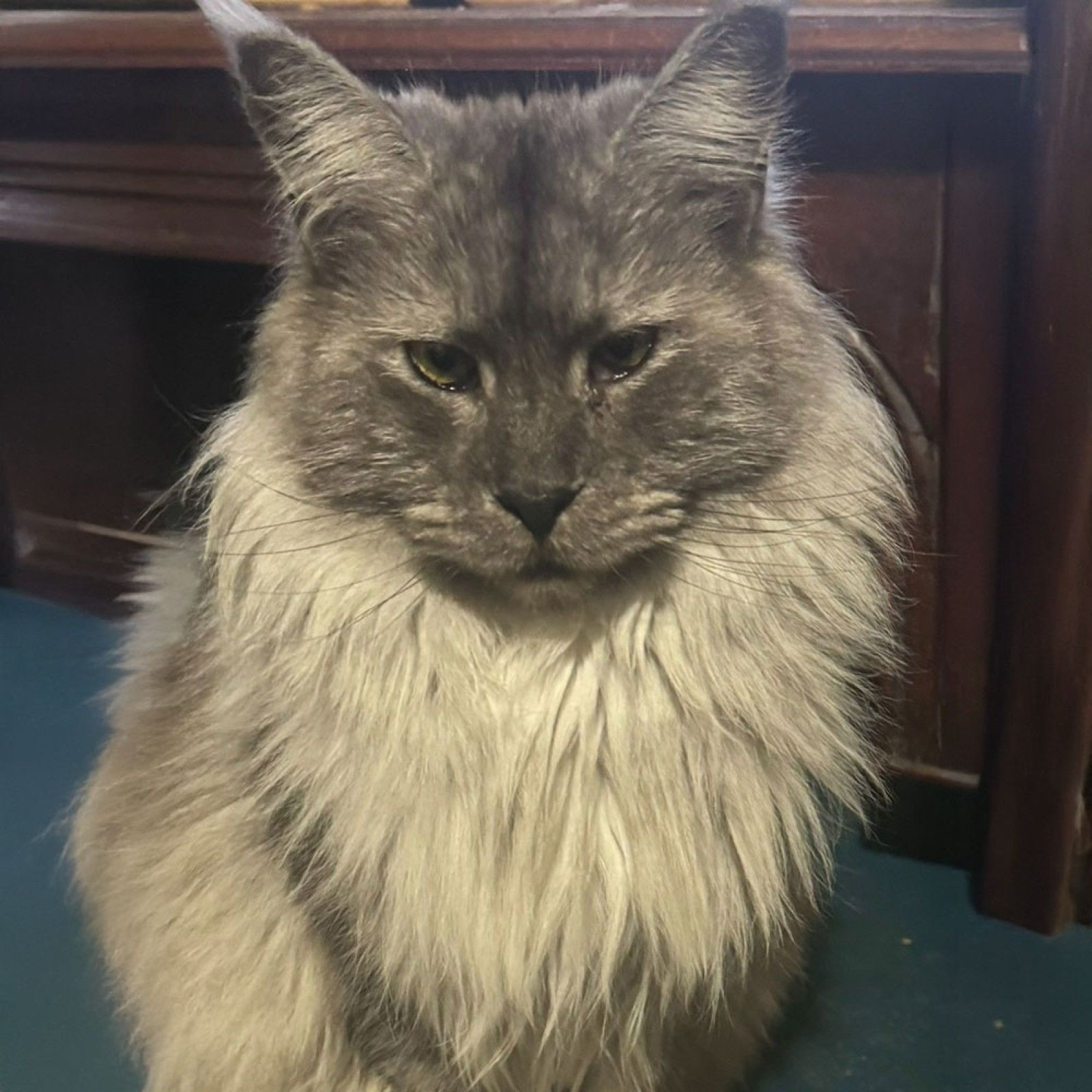 Sukura is an elegant queen with a striking pale smoke coat. Calm and affectionate, she embodies the classic Maine Coon temperament.