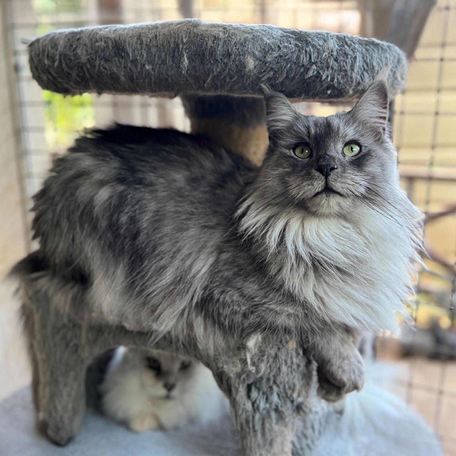 Silver Mist has a dreamy pale smoke coat that looks almost ethereal. She is gentle, loving, and passes her soft temperament to her kittens.